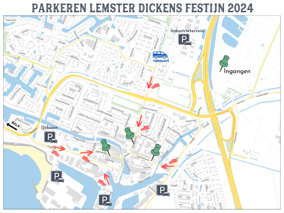 Kom je met de auto naar het Lemster Dickens Festijn? Volg dan de speciale Dickens-borden richting de parkeerterreinen. Vanaf diverse parkeerplekken rijden pendelbussen die je naar de ingang van het evenement brengen en na afloop weer terug. Voor de pendelbus vragen we een vrijwillige bijdrage, contant of via QR-code. Klik hieronder voor extra informatie met betrekking tot het parkeren.